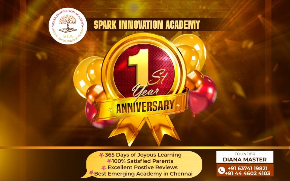 Spark Innovation Academy proudly celebrates 1 year of inspiring minds, nurturing growth, and empowering learners through innovative teaching, dedicated mentorship, and a joyful journey of academic excellence and discovery.